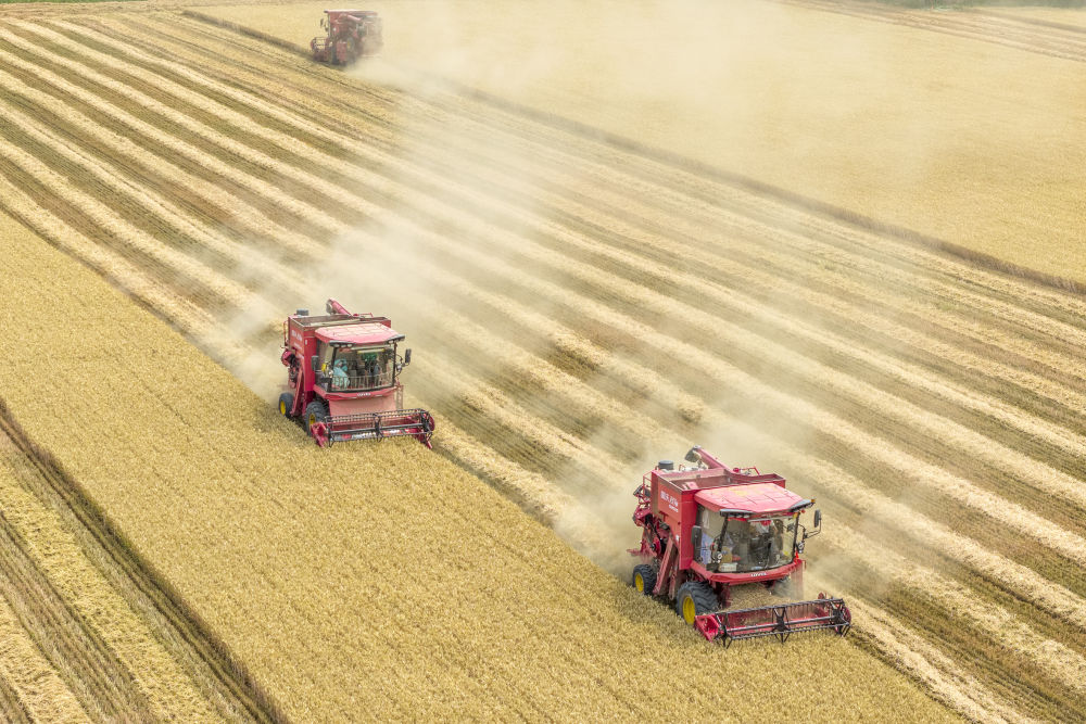 2025年6月9日,河南省三门峡灵宝市西阎乡东古驿村村平易近正在抢收小麦(无人机照片)。发(杜杰 摄)捷报频传,严沉能源工程持续上新:全球最大单体绿氨安拆正在大安投产、中国海上最大规模浅层岩性油田正式进入出产阶段……